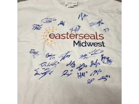 Bid on this white Easterseals Midwest t-shirt signed by members of the 2025-2026 Blues team!