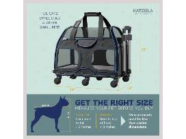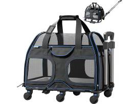 Katziela Luxury Rider Pro Removable Wheels & Double Telescopic Handle Airline-Approved Dog & Cat Carrier Bag, Black & Blue