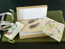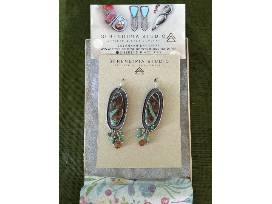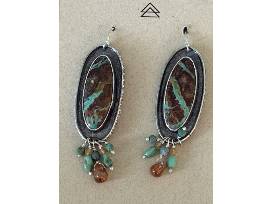 These beautiful earrings were hand crafted by jewelry designer Susannah Davidson. They are turquoise and sterling silver with hessonite garnet, apatite, turquoise, and tourmaline beads.