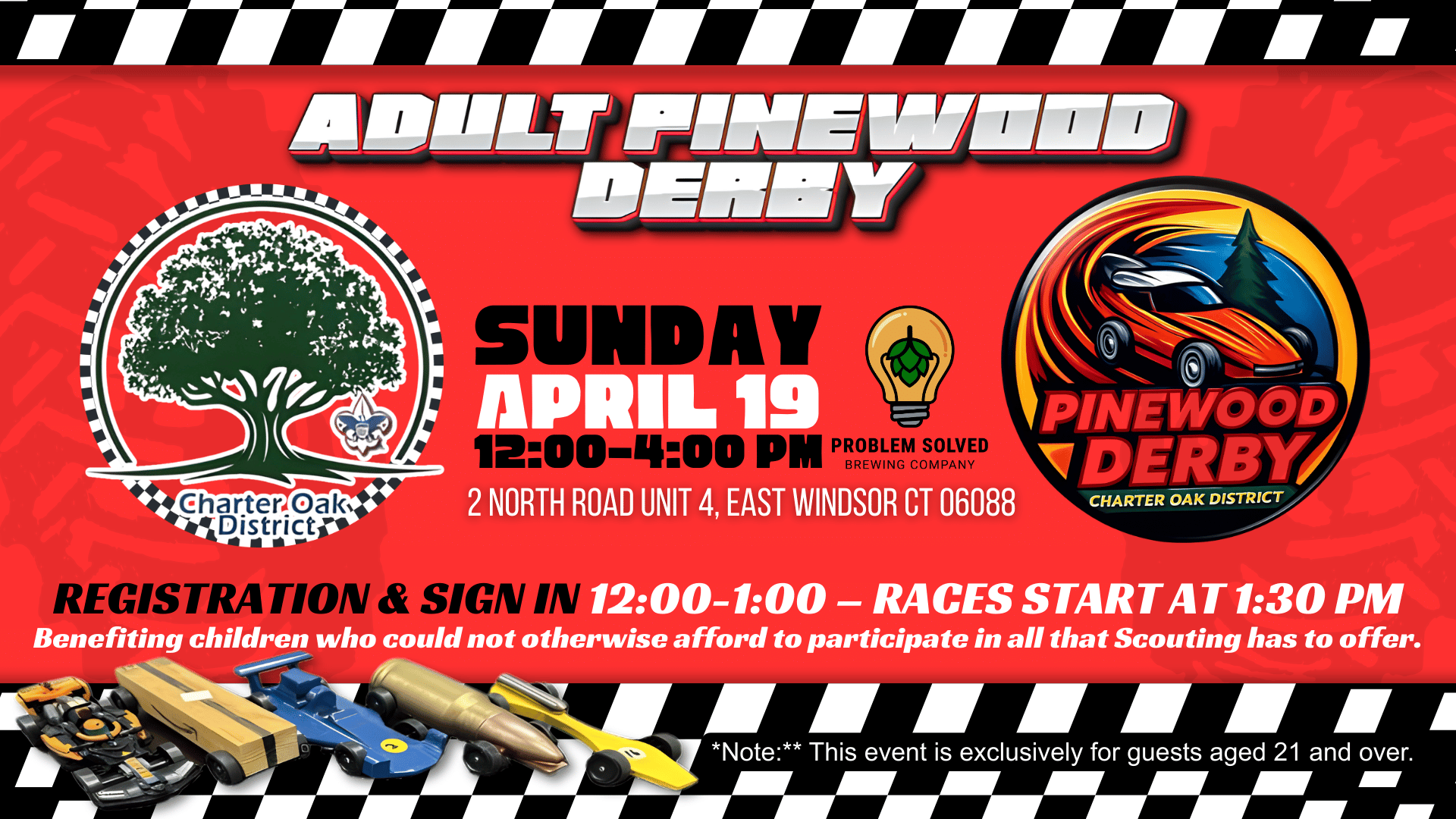 Help our cause by creating your own Charter Oak Pinewood Derby fundraising page today!