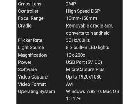 This device can handle videos and stills: with snapshot and video recording function up to 1920 x 1080. Finally, it also has the measurement function, being able to record measurements using included calibration software.