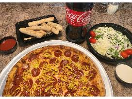 Toppings: pepperoni, mushroom, red onion, ham, green peppers, sausage, meatball, bacon, hot peppers, black olives, spinach, broccoli, pineapple, tomato, anchovies, extra cheese, ricotta cheese, jalapeno peppers