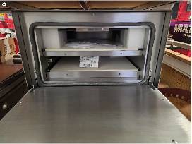 The Vollrath PBO4-208240 countertop pizza oven has a removable door for efficient cleaning. The door gasket prevents heat loss during operation, and the interior has hearthstone shelves for ideal pizza quality.
