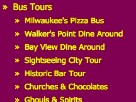 Enjoy great food and learn about the culture and architechure of Milwaukee. Take friends to enjoy the Milwaukee Food & City Tours offering delicious tour exploring both urban and suburban neighborhoods originally settled by Italian, Irish, Polish and German immigrants. On all of our food and cultural tours of Milwaukee, we point out architectural highlights, cultural hotspots, and great restaurants and shops while sampling flavors from restaurants along the way. Year-round, we offer food and cultural tours by both walking and bus! Gift Certificate for Milwaukee Food and City Tours. http://milwaukeefoodtours.com/