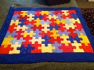 Puzzles often are used as a symbol representing autism and the uniqueness of each individual it touches. This beautifully hand crafted symbol for autism is a one of a kind made for WILC and is stunning. This quilted puzzle has each piece handstitched then machine sewn with the colors repeating in a pattern. Imagine this wall art hanging or lovingly used to warm your family.