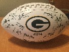 Own a collectable piece of the Packers. 2014 NFL Green Bay Team Football lithographed with signatures from all the Packer players (including fan favorites such as Aaron Rodgers, Clay Matthews and Jordy Nelson, and the entire team) and GB Coaching Staff, stored in this beautiful discplay case. This football cannot be purchased anywhere else but here and was a direct donation from the Green Bay Packers franchise organization!