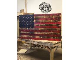Modern Kreations Custom Built Stained American Flag Wood Wall Hanging. (Modern Kreations can customize this piece into a gun rack specifically for your prized firearms!)