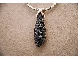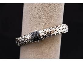 This is a one of a kind collection from the John Hardy Black Sapphire Suite Collection. This 4 piece set includes a sterling silver black sapphire pendant on a foxtail chain, sterling silver large black sapphire hoop earrings, sterling silver classic chain ring with black spinel sapphires, and a sterling silver classic chain large black sapphire bracelet. You don't want to miss this holiday season without this dazzling collection!