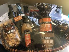 Enjoy this delicious gift basket that is all private label items from Kowalski's Markets! Popcorn, nuts, coffee, olive oil, chocolate, spices and condiments are included in this basket.