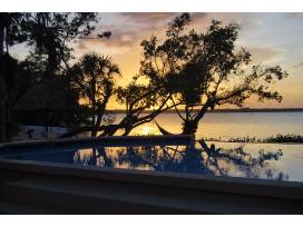 1-week stay for up to 4 at a beachfront casita in Orchid Bay. The Casita Village was the first turnkey real estate project at Orchid Bay, and a total of 24 casitas were built using modern building techniques to ensure quality and efficiency. These 1-bedroom casitas feature large screened porches, Belizean hardwood interiors, and a loft for additional guests or storage. Property features one bedroom (king size bed) and a loft with two twin beds, dishwasher, washer/dryer, and air conditioning. Transportation to and from BZE airport included. Optional fishing or Mayan ruins excursions may be added on.