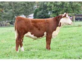 This heifer is another heavyweight, high performer in the flush. She is big in her skeleton with impressive width of base and back; these sisters are some thick Herefords! We are running an older sister to these heifers that is sensational as well.