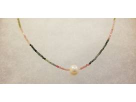 Custom hand-made Tourmarine and Pearl necklace and earrings
