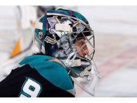 One-of-a-kind #36 John Gibson Pre-Game Worn Custom Kariya-Themed Goalie mask
