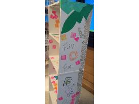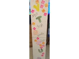Bookcase decorated by the cute little artists in Ms. Holman & Ms. Dixon's class. Bookcase decorated based on a favorite book Chicka Chicka Boom Boom by Bill Martin Jr. & John Archambault. Illustrated by Lois Ehlert