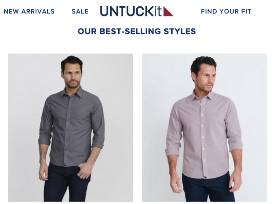 We started UNTUCKit because we couldn't find shirts that looked good untucked. It's a tough style to get right. That's why we created the perfect untucked shirt. It hits at that just-right length, fits all shapes and sizes, and helps you look sharp-even at your most casual.