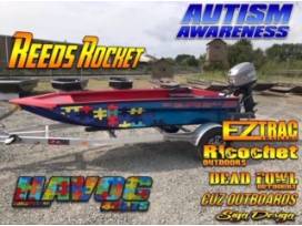 This custom, one of a kind boat was inspired by Will Fagan (son of Will & Brook Fagan) who has Autism and participates in Community Connections programs. It has been taken to tournaments and events to promote Autism Awareness & is now going home with the winner!