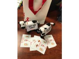 Gift bag with 2 small stuffed cows and gift card for 10 products