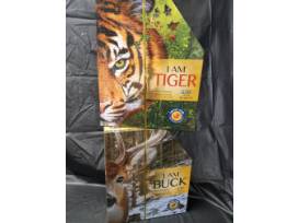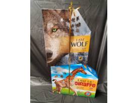 4 puzzles. Distinctive five sided box help display our product on a bookshelf in your home. Contains a colorful insert with fun facts and puzzle image reference