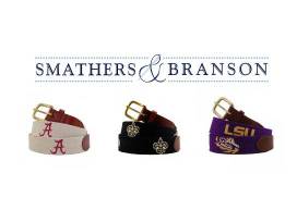 Enjoy this $175 gift card to Smathers & Branson! Known for their needlepoint belts finished with full-grain leather in a rich chestnut color and a sturdy brass buckle - you can cheer on your team in style. Smathers & Branson's collection expands beyond just belts - key fobs, hats, luggage tags, flasks, phone cases, golf accessories...