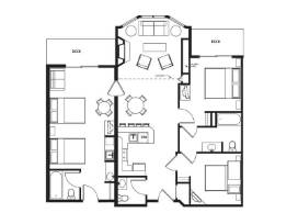 This gorgeous 3-bedroom condo sleeps up to 6 in the condo unit, and includes a full kitchen, dining room, fireplace, 2 bathrooms and a living room. What's more - up to 6 additional 6 guests can sleep in the adjoining room with 2 queen beds, pull out couch, and full bathroom! Grab 11 of your closest friends and family and head west for this unforgettable getaway!