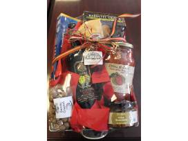 This basket from Larry's Market is filled with everything you need to make a scrumptious Italian feast, including: a bottle of Balatoni Merlot; a jar of olive bruschetta; a jar of Cucina Antica tomato basil sauce; Volpi Chianti salami; a box of spaghetti; a box of garlic, chive, and parsley baguette crisps; and tiramisu caramels to finish off your delicious meal. Yum! This package is magnÃfico!
