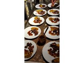 -Herb rubbed beef tenderloin stuffed with pine nut asiago filling, skewered with fresh rosemary sprig, served warm with drizzle of infused rosemary oil