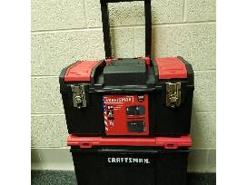 - Portable organizer and large bottom bin providing the solution for all tool storage needs;Telescopic handle for convenient maneuverability, that also folds down for storage: