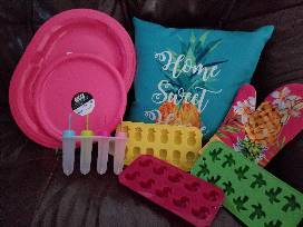 Plastic Pink Serving Tray with 4 Pink Dinner Plates