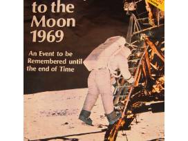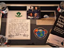 - Commemorative "Man on the Moon" glasses, "Journey to the Moon 1969" publication, and Apollo mission astronaut photograph.