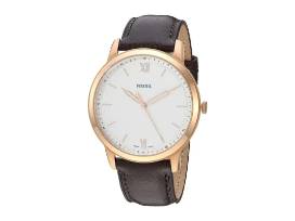 This Fossil watch is a timeless piece handcrafted with a sleek leather band and stainless steel case. This piece features a sturdy mineral crystal to protect the dial and a japanese quartz movement to ensure you remain punctual in your daily life.