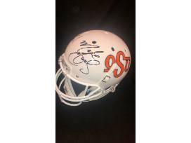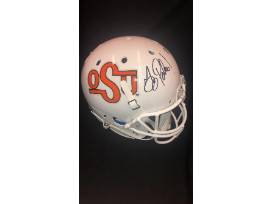 OSU Football Helmet signed by OSU Head Football Coach, Mike Gundy. The helmet is the design and style Coach Gundy wore during his year's as OSU Quarterback in the late 80s.