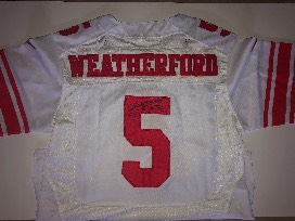 Signed jersey donated by Steve Weatherford. Super Bowl XLVI Champion