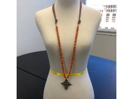 Silver Ethiopian Cross necklace with stunningly Bright Orange Czech Glass Beads on Suede. This vibrant piece is sure to get you noticed for all the right reasons.