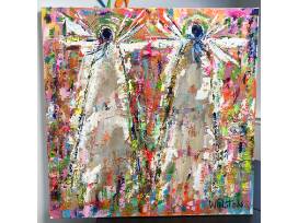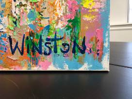 A one of a kind multilayered mixed media painting by Winston Wiant. Winston's paintings bring a witty delight through her bold color and use of texture. She is a featured artist with the Atlanta Artist Collective and a favorite by many. Winston resides in Atlanta with her husband and two daughters.