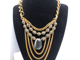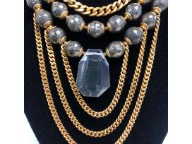 Stunning Ingrid Ysla Necklace. 24kt Gold Plated Chain, Pyrite, Crystal opulently displayed too show this unique design.