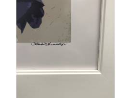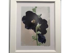 A 12x16 contemporary portrait of a bold purple flower. Beautifully framed in a 20x24 white wooden frame.