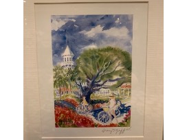 "Girl on a Bicycle" is an 8 1/2 x 11 signed print of the original watercolor by Mary T. Griffith in a 15 1/2 x 18 1/2 frame.