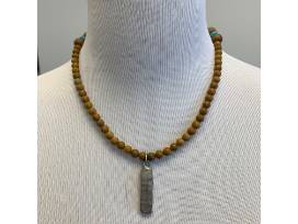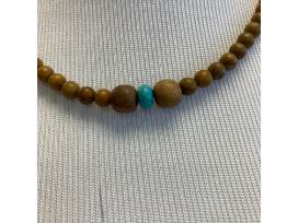 Wooden, Semiprecious Turquoise, and Silver Necklace