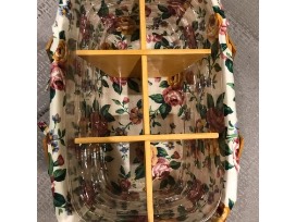 Iconic basket-maker Longaberger Co. has since retired their business, but their products are still highly coveted online. Take home your own handwoven basket, complete with a plastic protection unit, decorative floral cloth, and wooden divider.