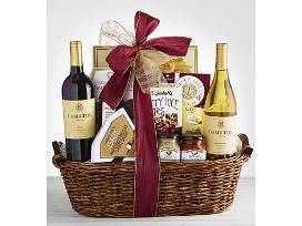 Keep the party going with this beautiful wine & gourmet basket, perfect for your favorite premium wine lover! With two bottles of specially selected wines from prized vineyards, and sweet & savory pairings, this gift truly lives up to it's name.