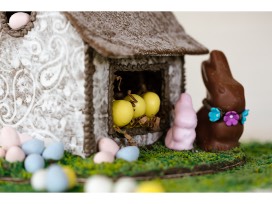 Buttery cookies and Cadbury chocolates in the form of an Easter Bunny Hutch? Yes! This sweet little edible will be sure to make this Easter your best one yet! The hutch comes on this darling pedestal for all to enjoy!