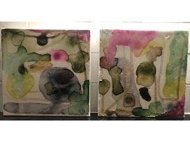 2, 8" x 8" mixed media paintings