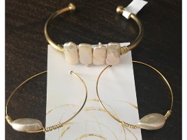 Handmade, brass and freshwater pearl earrings and bracelet