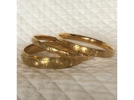 Gold filled engraved bangle bracelets. Made in New England by a generations old company. Set of three bracelets are exchangeable.