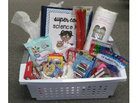 This kit contains 30 Science experiment cards, a Science journal, and some supplies to help you conduct your experiments.
