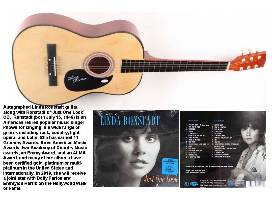 Autographed Linda Ronstadt guitar, along with Just One Look: The Very Best Of Linda Ronstadt (2CD). Ronstadt (born July 15, 1946) is an American retired popular music singer known for singing in a wide range of genres including rock, country, light opera, and Latin. She has earned 11 Grammy Awards, three American Music Awards, two Academy of Country Music awards, an Emmy Award, and an ALMA Award, and many of her albums have been certified gold, platinum or multiplatinum in the United States and internationally. In 2019, she will receive a joint star with Dolly Parton and Emmylou Harris on the Hollywood Walk of Fame.