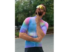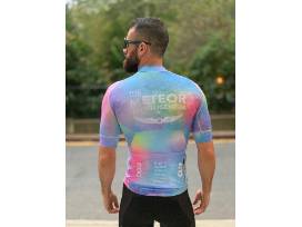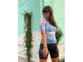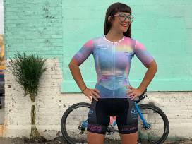 Team cycling jersey designed by Chick Mission grant recipient, BrittLee Bowman. BrittLee races for and operates the elite level women's bike racing team "THE METEOR // INTELLIGENTSIA".