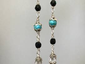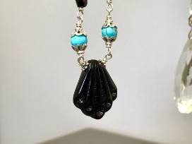 Vintage glass bead pendant with crystals, turquoise and freshwater pearls on sterling silver.