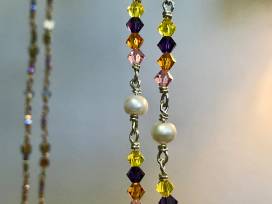 Crystal pendant with pink and purple crystal beads and freshwater pearls on sterling silver.