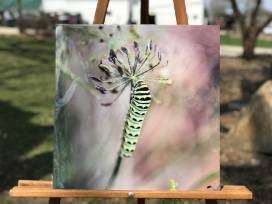 A beautifully captured print of a caterpillar on a metal backing just waiting to meet a wall near you.